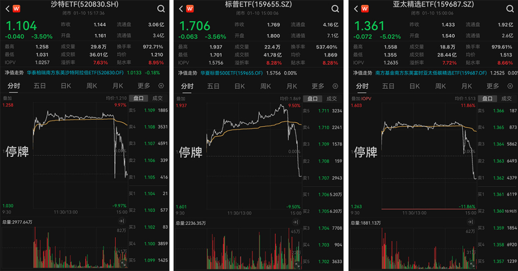 1月10日,多只“高溢价”跨境ETF尾盘大面积跳水。