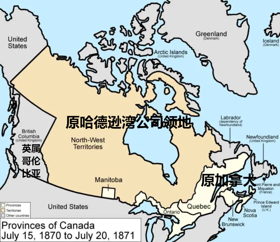 1869年,英国将哈德逊湾公司的领地并入加拿大自治领