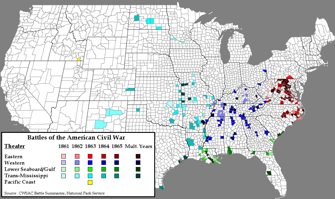 在加拿大谋求自治的同时,领土一路高歌猛进的美国也迎来了一场内乱。随着领土西进,北方的自由州和南部的蓄奴州对于新加入美国的地区,到底该是蓄奴州还是自由州,进行了激烈的争夺,最终导致南方宣布退出联邦,内战爆发。