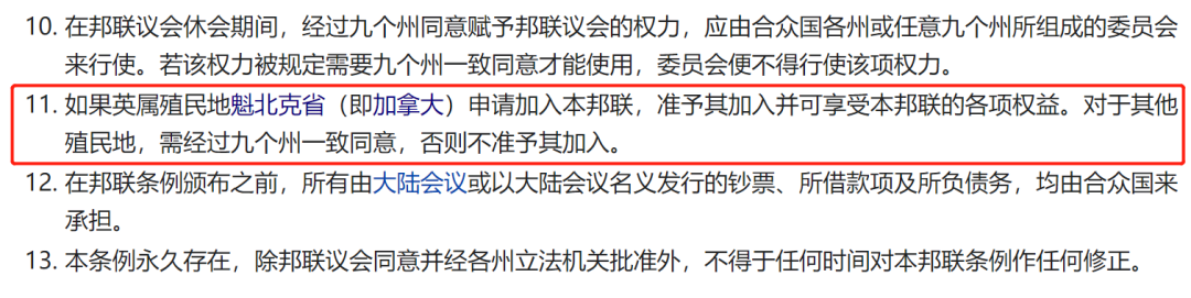 在1775年召开的第二届大陆会议上,宣布独立的十三州又发布了第二封《敬告加拿大人民书》,他们甚至在《邦联条例》中给魁北克预留了一个位置,希望魁北克成为新独立国家的十四个州,但仍没得到魁北克居民的回应。