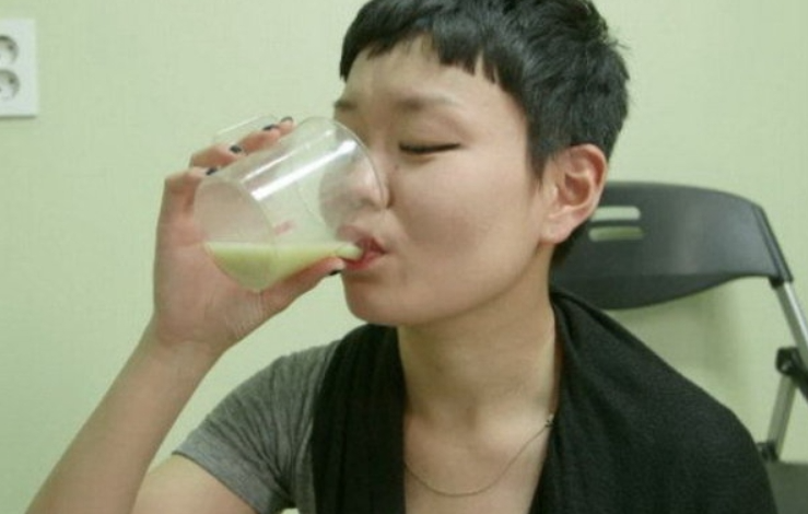 曾有日本记者千代,在听说了韩国粪酒的故事后,专程来韩国体验。当她拿起酒杯,刚触碰到嘴唇,就像被硫酸灼烧一般,表情立刻从期待变成了崩溃:“我这是要喝什么?这是传说中的屎酒吗?”