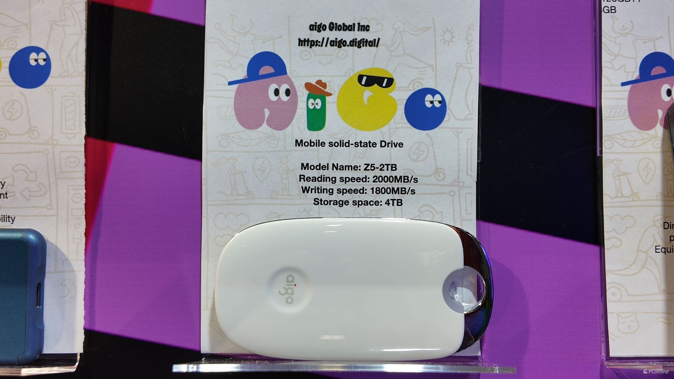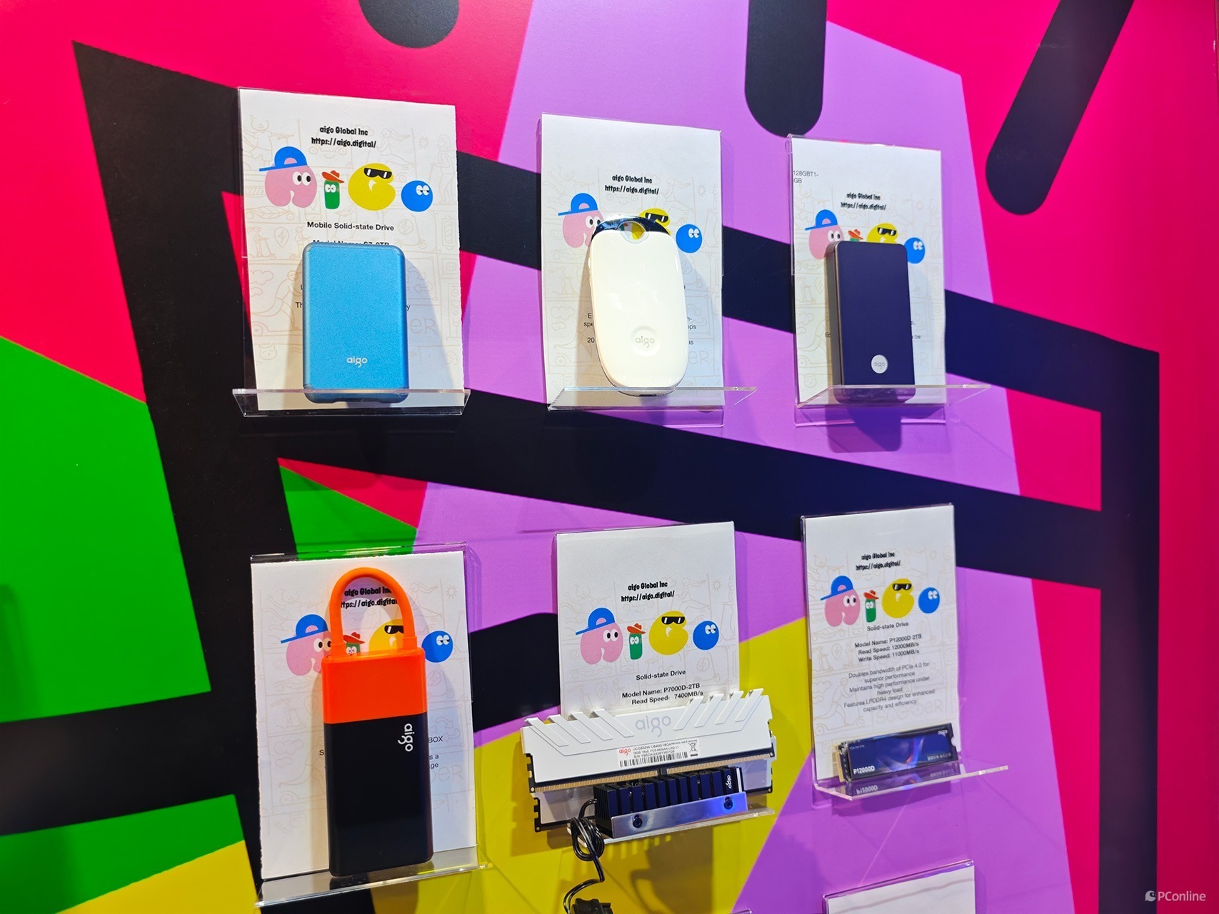 这里还摆放着aigo的其他存储产品,从U盘、移动硬盘到内存、M.2电脑硬盘一应俱全。