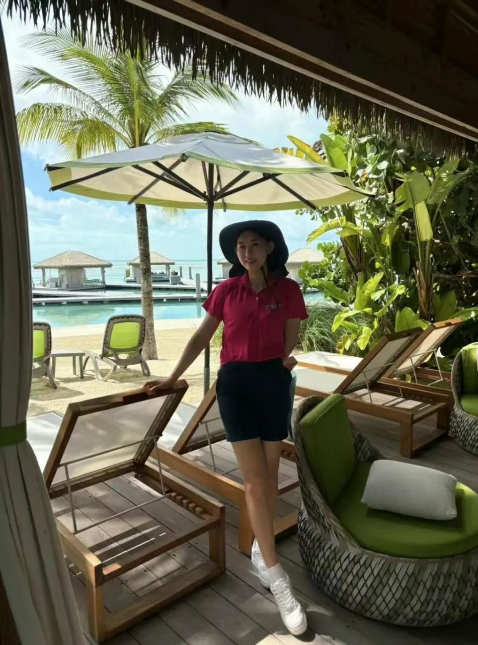 ▲邮轮靠岸后,于淼抽空在可可岛旅行