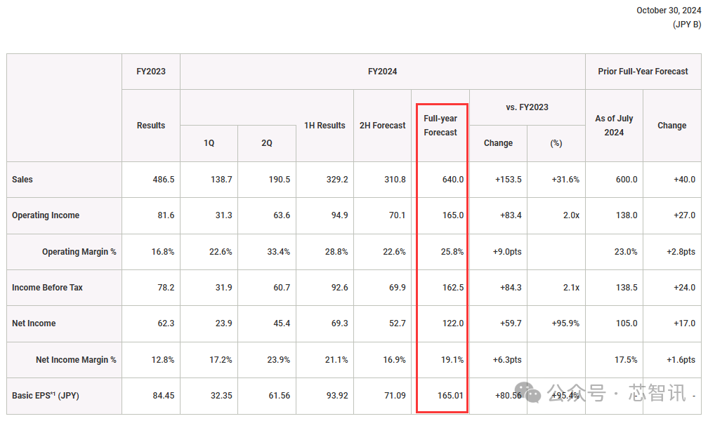 这也使得爱德万测试在2024年10月将截至2025年3月止的整个财年SoC测试设备销售额预测上调320亿日圆,目前预测将成长32%,达到3,240亿日圆,这将占预测总营收6,400亿日元的一半以上。