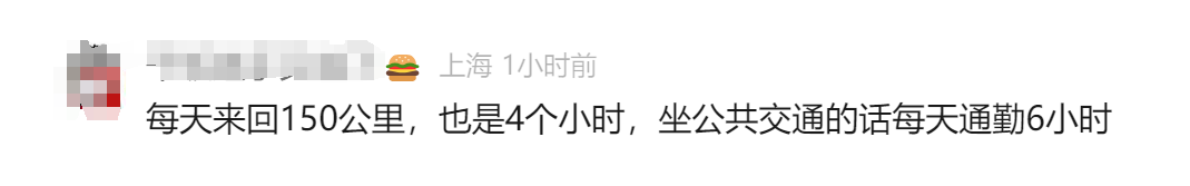 住在奉贤老城区的小黄,早高峰通勤时间直逼单程两个半小时,坚持数月后她离职了。小黄和园园女士的看法截然不同,“有时候压垮人的就是通勤最后那半个小时。”当记者问到是否愿意用两千块换一半的通勤时长时,小黄表示,“当然愿意。”