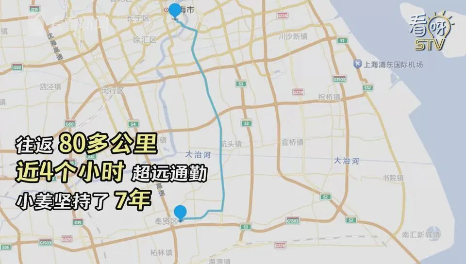 小姜家住奉贤南桥,目前在黄浦区的一所小学任教,因此,他每天不得不往返80多公里,单程通勤时间接近两小时。而这种令不少打工人直呼“可怕”的极限通勤,他已经坚持了7年。