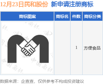 证券之星消息,根据企查查数据显示,近日山东民和牧业股份有限公司新提交1件商标注册申请。商标申请详情如下:
