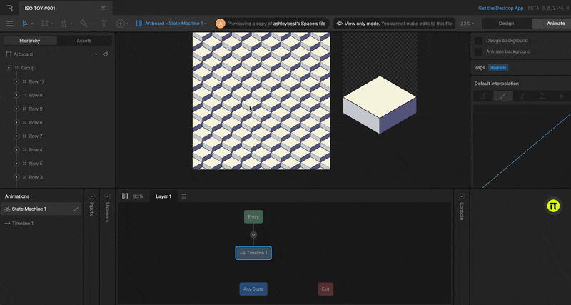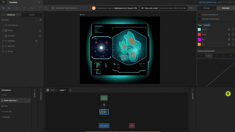 对于追求高效的创作者来说,实时性可是关键指标。Rive在这方面堪称表率,它自带实时渲染“超能力”,设计师每一次调整动画参数,无论是微调元素的位移、改变颜色的渐变节奏,当下就能目睹效果,无需漫长等待导出预览。这种即时反馈机制,在团队协作里更是神器,设计师与开发者同处一个“创意直播间”,一方修改,另一方即刻评估,创意落地行云流水。