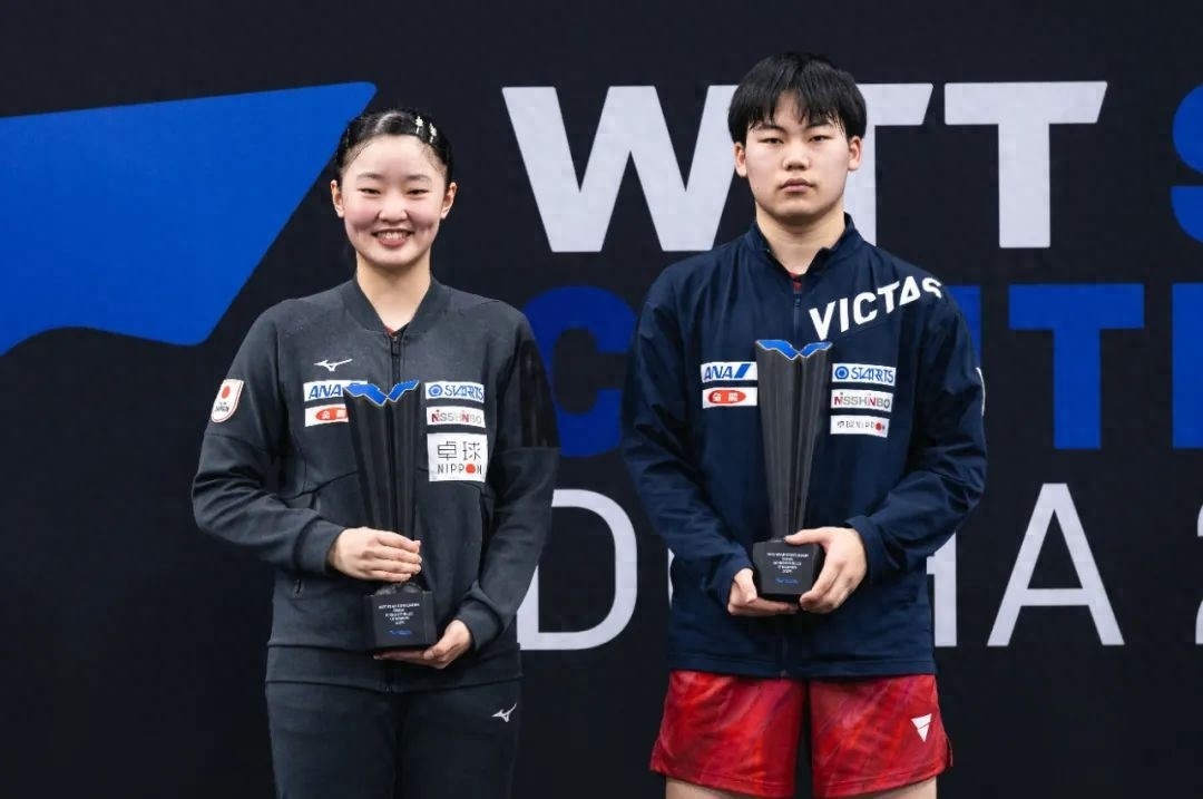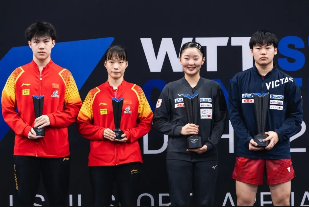 1月11日晚,WTT球星挑战赛多哈站2025全部比赛告一段落,继向鹏/徐瑛彬、大藤沙月/横井咲樱夺得男女双打冠军后,松岛辉空/张本美和拿到了混双冠军,女单、男单冠军分别归属于蒯曼和张本智和。
