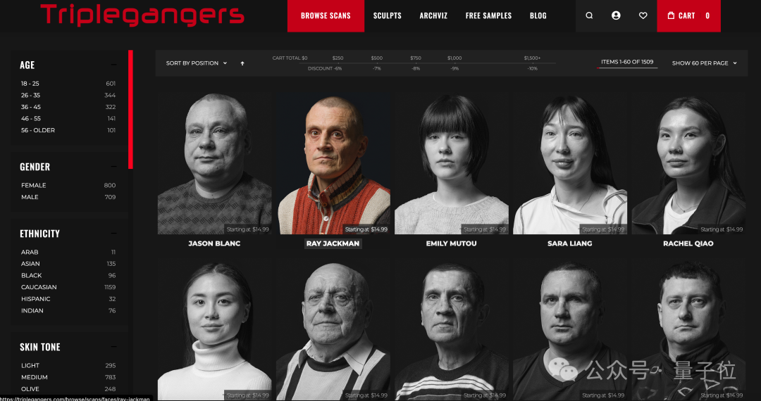 网站包含从实际人类模型扫描的3D图像文件,并且照片还带有详细的标签,涵盖种族、年龄、纹身与疤痕、各种体型等信息。