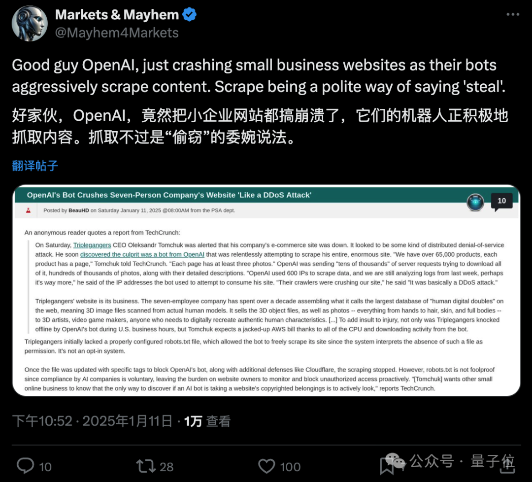 万万没想到,能把一家公司网站给搞宕机的元凶,竟然是OpenAI疯狂爬虫的机器人——GPTBot。