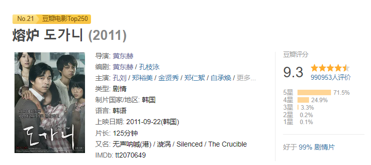 要知道,本片的导演+编剧黄东赫,可是拍过改变国家的电影《熔炉》,所以对于社会问题自有独到见解。