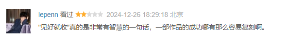 果然,"见好就收"真的是非常有智慧的一句话,一部作品的成功哪有那么容易复刻啊。