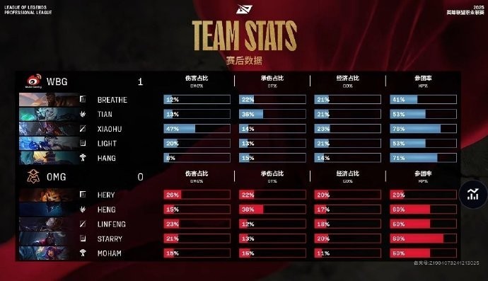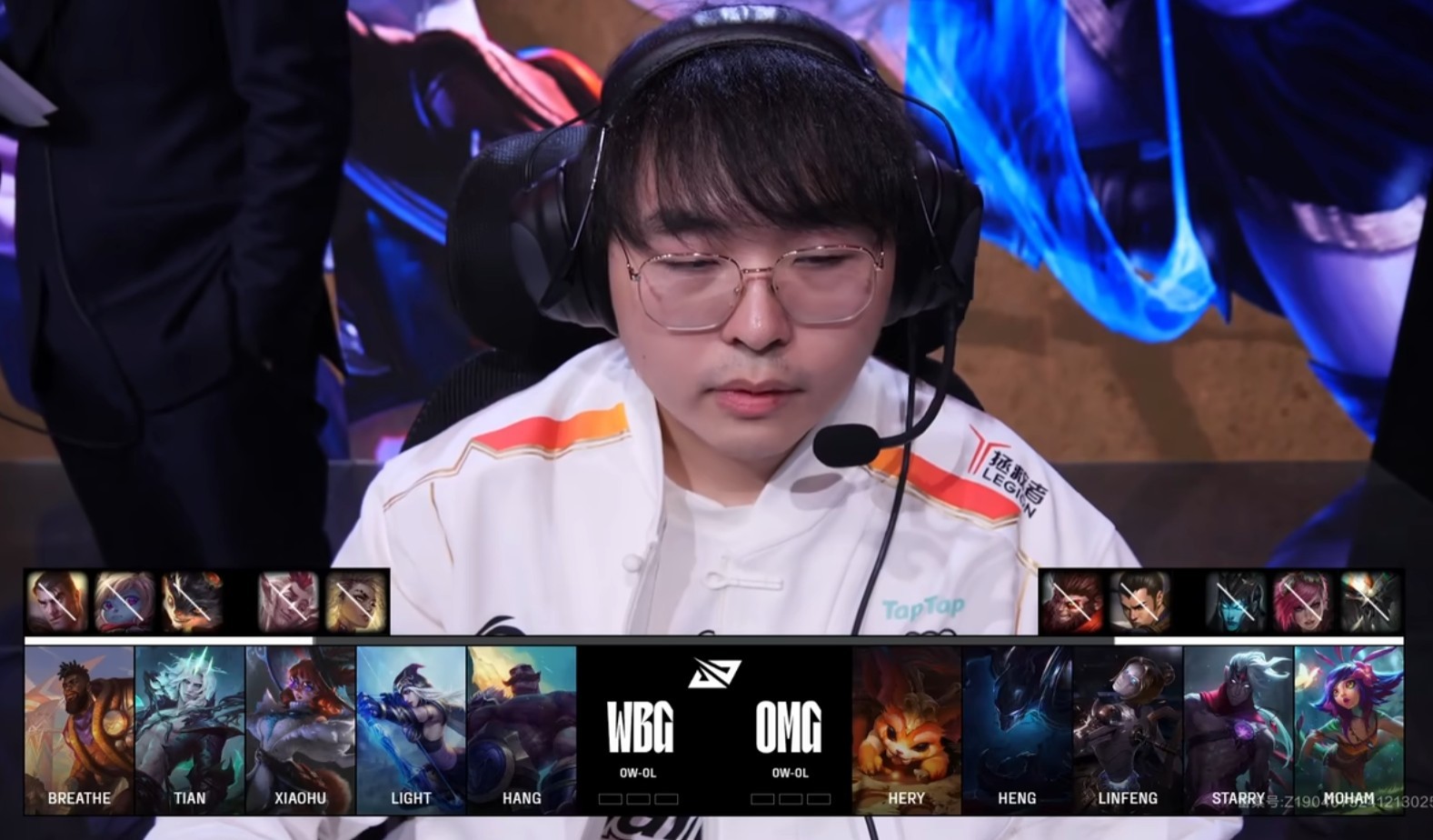 WBG:上单Breathe、打野Tian、中单Xiaohu、下路Light、辅助Hang