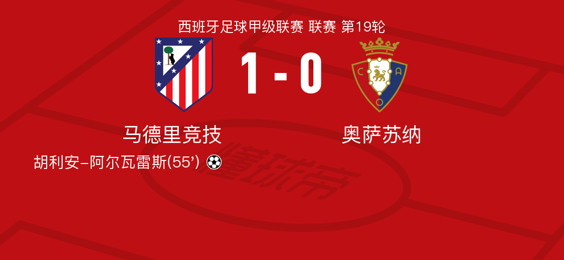 北京时间1月12日马德里竞技vs奥萨苏纳,朗格莱得到全场最高的7.9分,安赫尔-科雷亚得到全场最低的6.1分