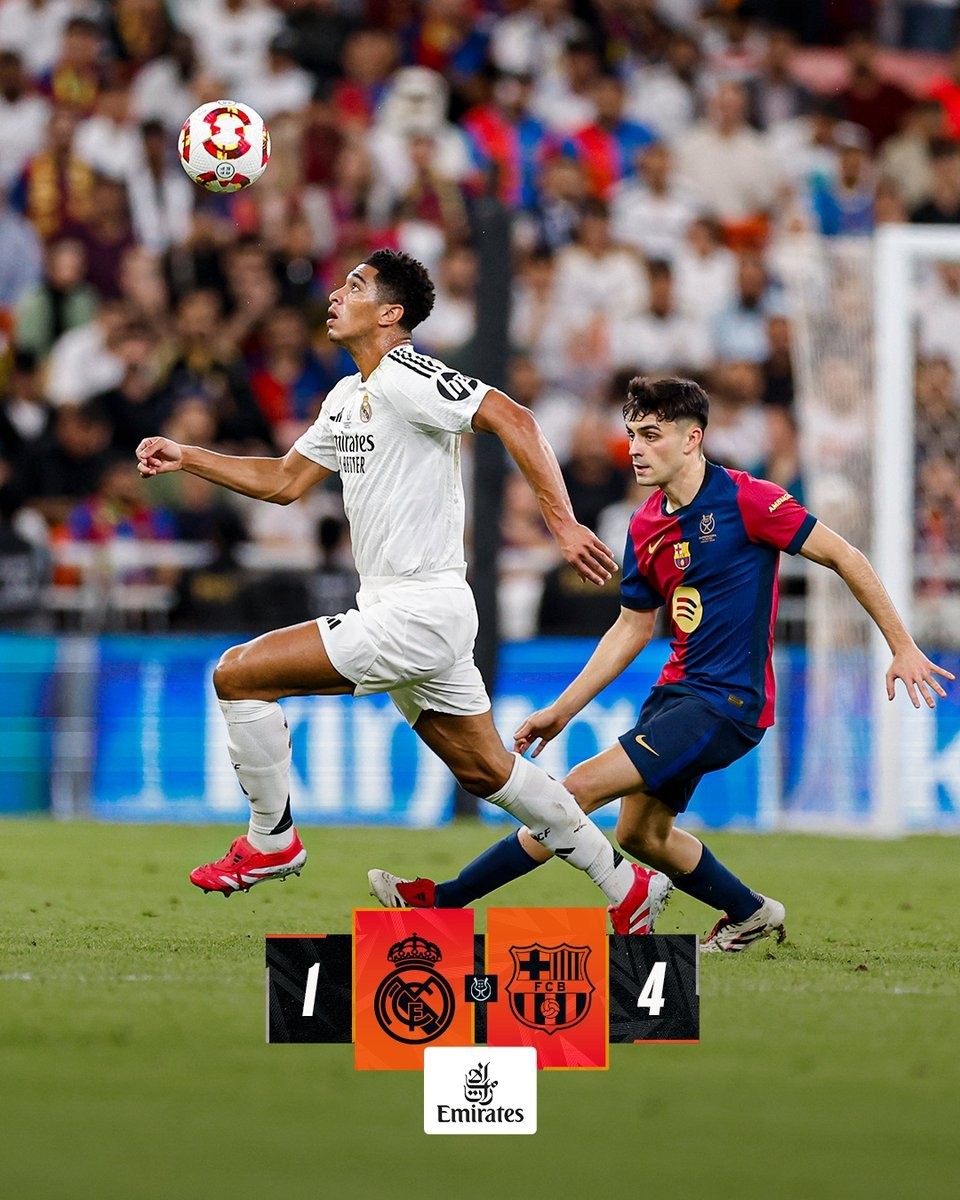 北京时间1月13日,在西班牙超级杯决赛中,巴塞罗那在半场过后就以4-1的大比分领先于皇家马德里。此战姆巴佩开场仅仅5分钟就为皇马率先破门,但此后亚马尔、莱万多夫斯基、拉菲尼亚以及阿莱士-巴尔德连进四球,帮助巴萨在半场过后取得了4-1的领先优势。