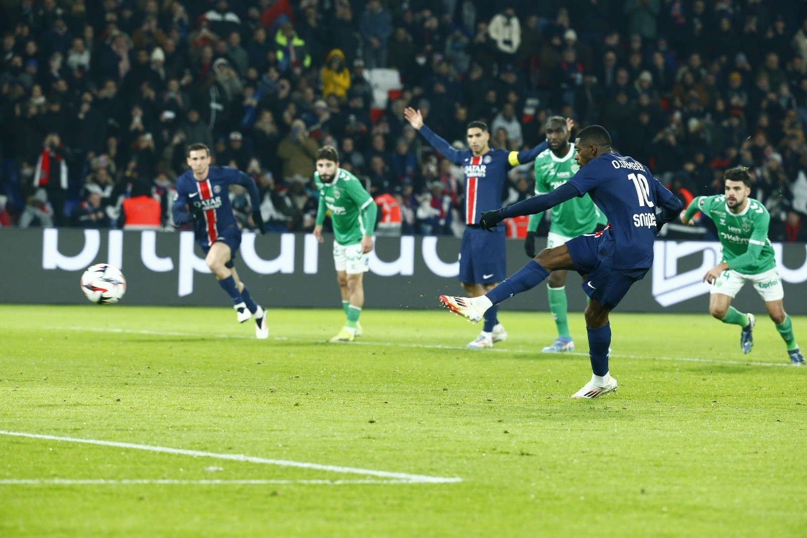 法甲第17轮主场迎战圣埃蒂安的比赛中,奥斯曼-登贝莱的梅开二度帮助巴黎圣日耳曼取得2-0的领先。