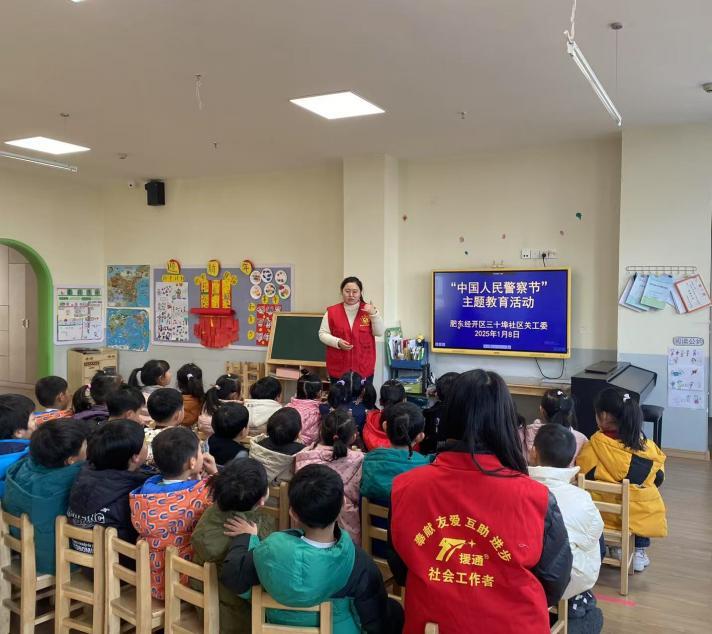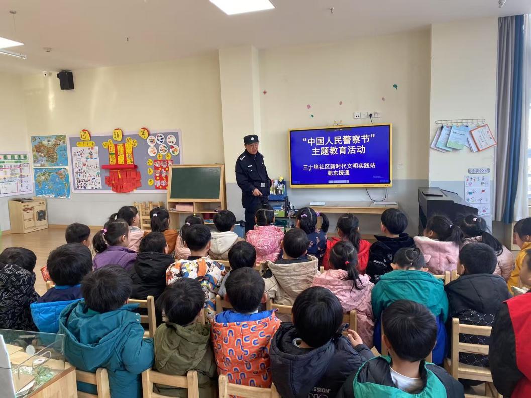 为庆祝第五个“中国人民警察节”,让孩子们深入了解中国人民警察节的意义,1月8日,肥东县经开区派出所二级警官周庆联合三十埠社区工作者来到肥东县未来之光幼教集团总园开展“1.10中国警察节”主题活动。