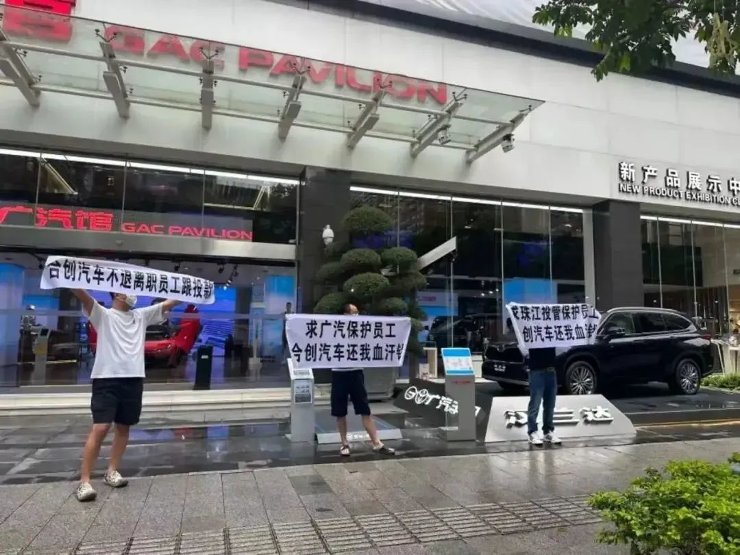 去年6月,有3名合创汽车的前员工因为顶不住压力,跑到合创汽车广州总部拉横幅维权,要求合创汽车退还跟投款。