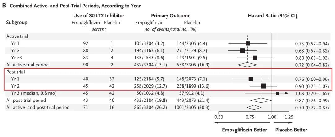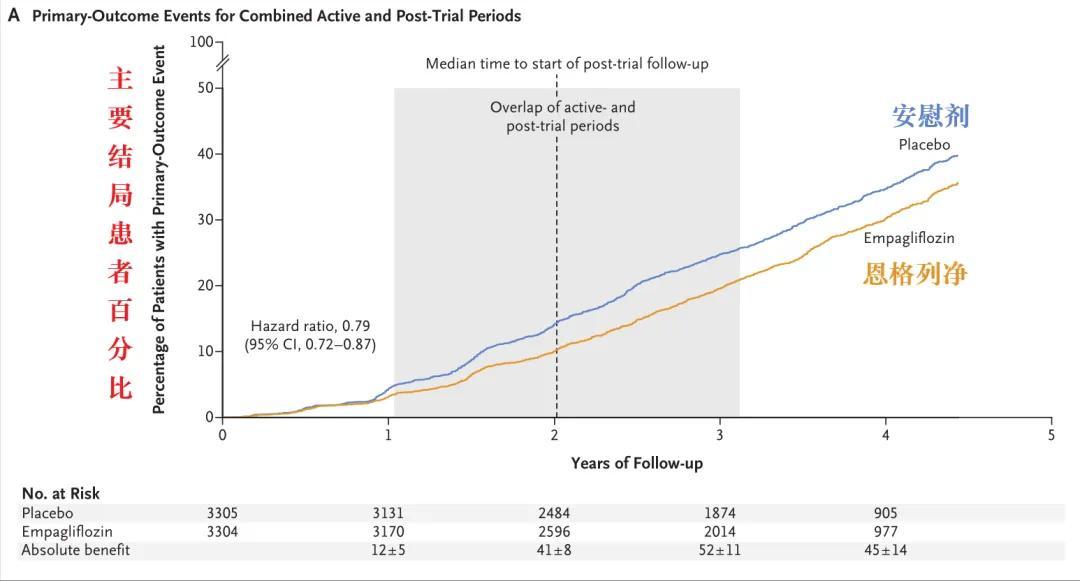 仅在试验后阶段,恩格列净组主要结局风险相对安慰剂组降低13%。