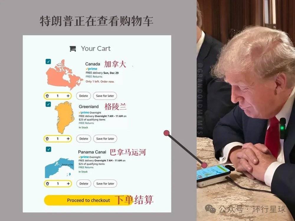 先是不排除用军事或者经济的手段,夺取格陵兰与巴拿马运河的控制权。