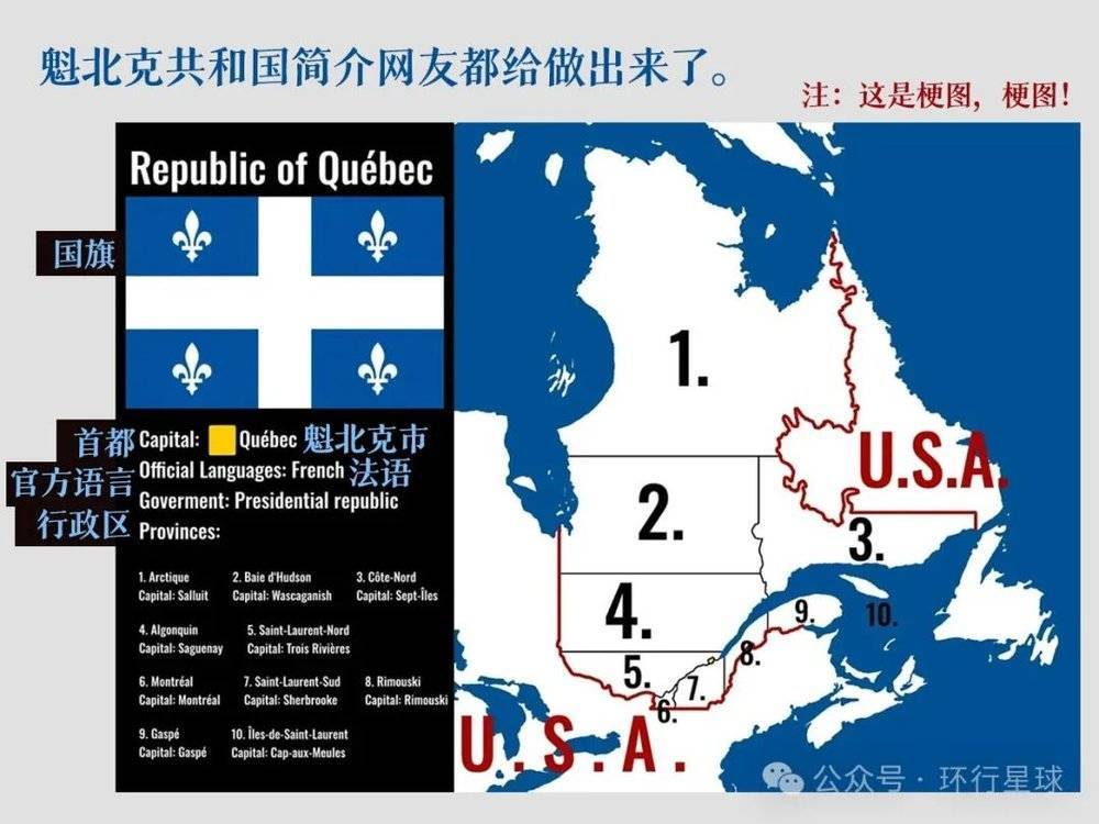 魁北克建国假想图,这块法语区从不与周边的英语区同调,图:Reddit