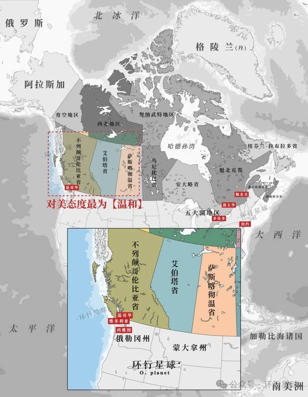 加拿大的省份中,最想加入美国的有 艾伯塔省(简称阿省)、萨斯喀彻温省(简称萨省),以及不列颠哥伦比亚省(简称卑诗省)。
