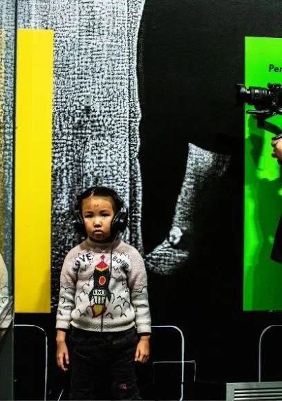 此外,展览还设置了一个互动区域,观众可以通过触摸屏了解博伊斯的环保行动主义历程。从“7000棵橡树”项目到他在艺术与社会之间搭建的桥梁,展览通过多媒体手段,将博伊斯的理念生动呈现。现场的音响系统播放着博伊斯的访谈录音,增强了沉浸式体验,让人仿佛与这位艺术大师对话。