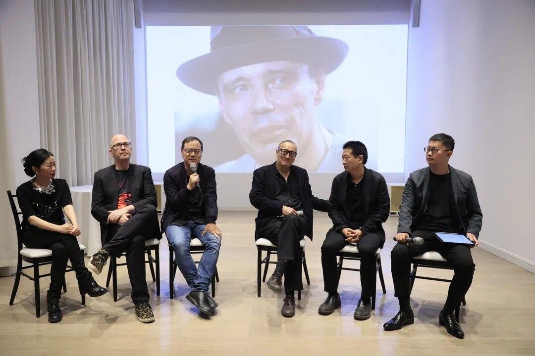 凤凰艺术联合创始人、副总裁、总编辑、凤凰中心馆长、本次展览策展人肖戈,美国匹兹堡大学荣休教授、艺术理论家和策展人高名潞,整策师、艺评人、艺术家、电影制作人、电影导演陆蓉之,天津美术学院院长、艺术家、评论家、博伊斯研究中心(中国)主席邱志杰,博伊斯研究中心(中国)主任、本次展览策展人乔纳斯·斯坦普(Jonas Stampe)以及著名艺术家、中央美术学院教授缪晓春,著名艺术家宋冬、尹秀珍的对话环节,成为展览的亮点之一。他们从不同文化背景出发,探讨了博伊斯的艺术哲学与社会理念,观众们纷纷围观,热烈互动。这不仅加深了对博伊斯思想的理解,也促进了中西方艺术交流的深入发展。