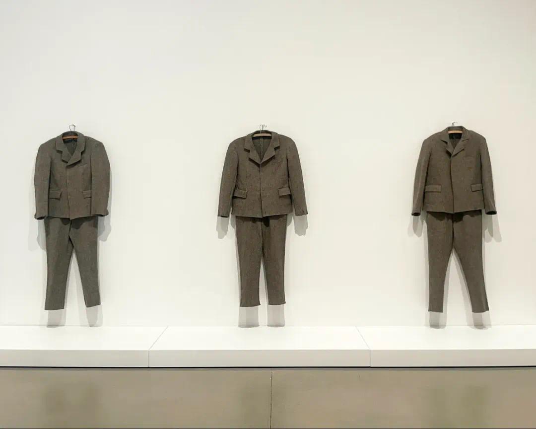 ▲ 约瑟夫·博伊斯,Filzanzug(毛毡套装)系列中的三件作品(均为 1970 年),毛毡(照片来自 Renée Reizman/Hyperallergic)