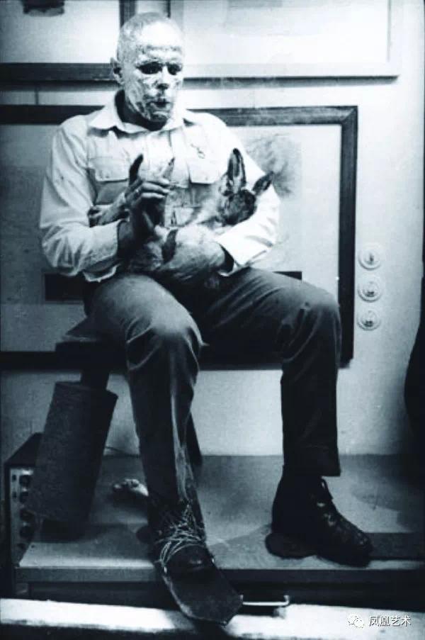 ▲ 博伊斯《如何向一只死兔子解释墙上的绘画》