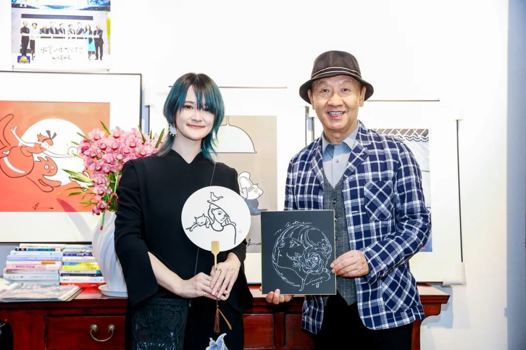 不约而同,金城馆长也一早备好为米山舞准备好的一把亲绘了“极简少女”的雅致木质团扇。