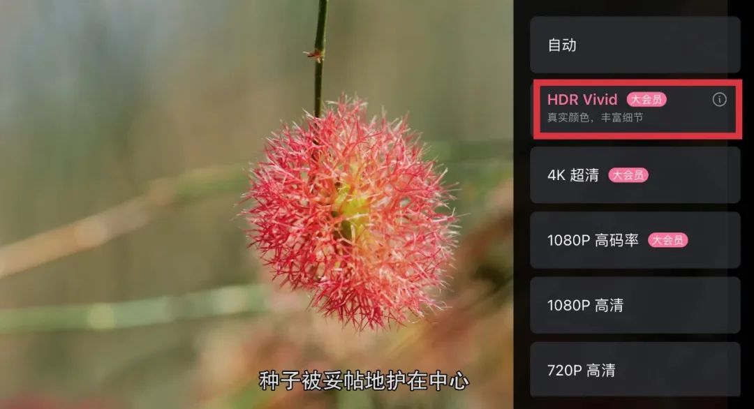 相比于1080P等普通画质,HDR Vivid版本色彩更艳丽饱满,细节更细腻清晰。