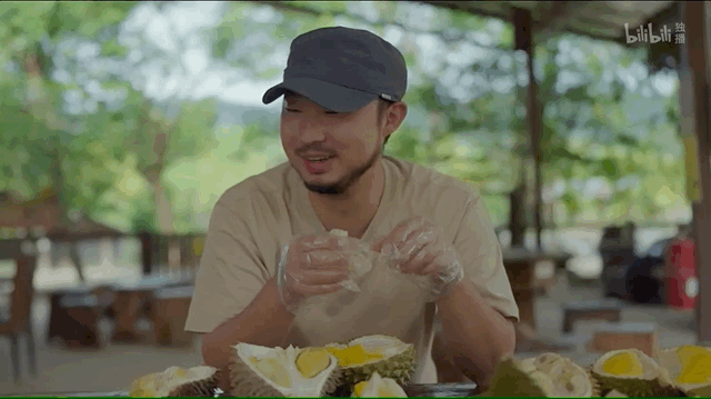 小亮的面前摆满了各式各样的榴梿:纯野生的山芭榴梿,号称“榴梿界爱马仕”的猫山王榴梿,本地挚爱的红虾榴梿。