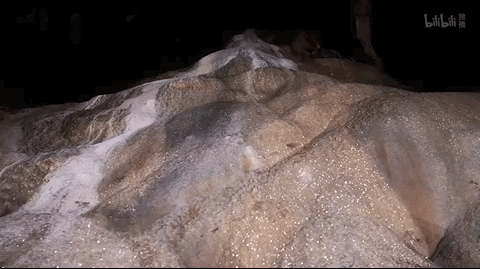 钟乳石表面的晶体闪烁着金沙般的光芒,犹如浩瀚星河。