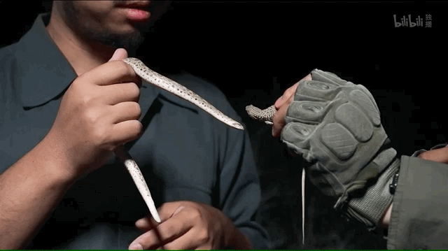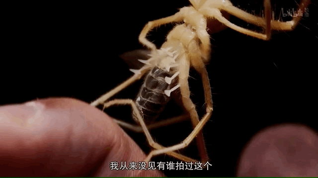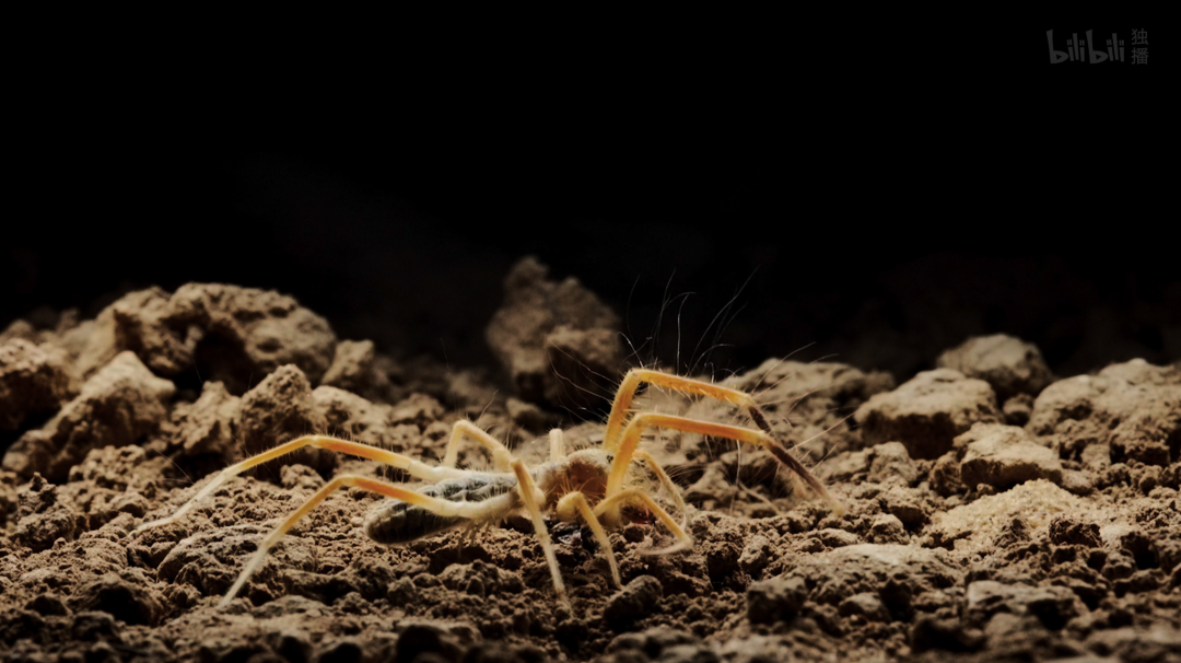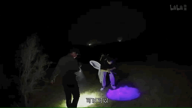 第三集中,为了捕捉到长螯正钳蝎的身影,科学家打着紫外线灯寻找。