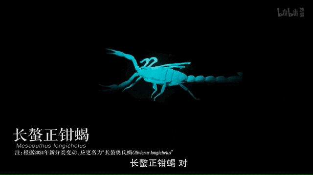 因而,在紫外线灯的照射下,长螯正钳蝎散发着荧光。