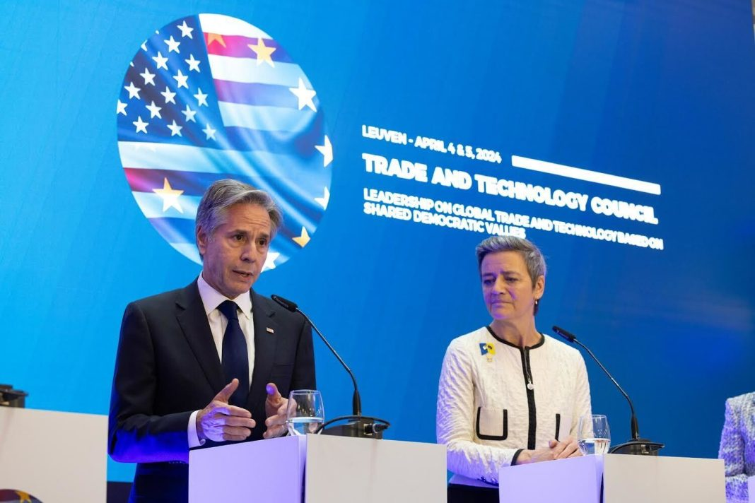 2024年4月,布林肯在第六届美欧贸易和技术委员会联合新闻发布会上讲话