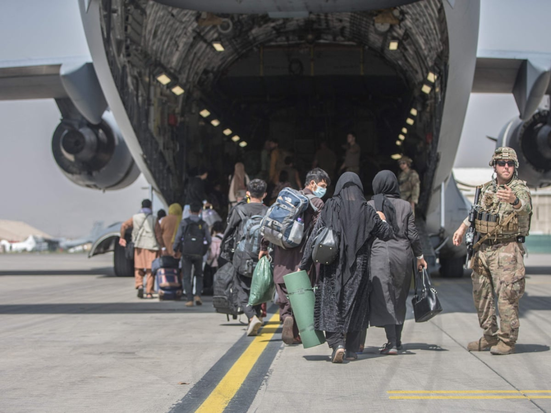 美军撤离阿富汗喀布尔期间,美国家庭登上美国空军飞机