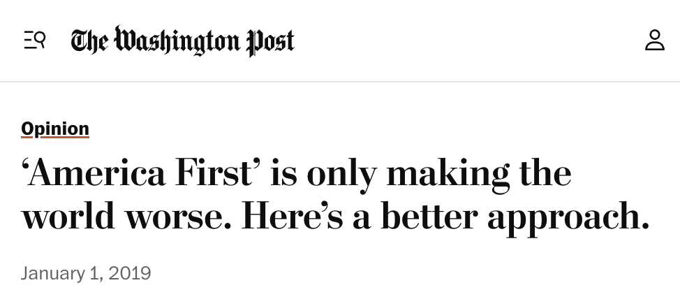 2019年1月,布林肯与卡根共同撰文反对特朗普第一任期的孤立主义外交倾向
