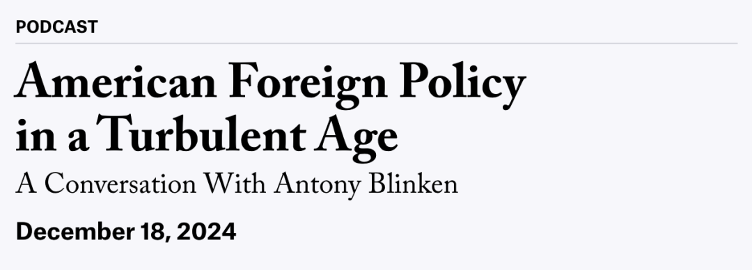 2024年12月18日,布林肯接受《外交事务》杂志专访