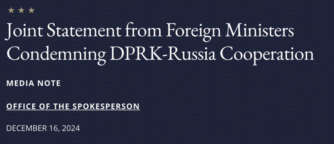 12月16日,美国联合多国外长发布对朝俄合作的谴责声明