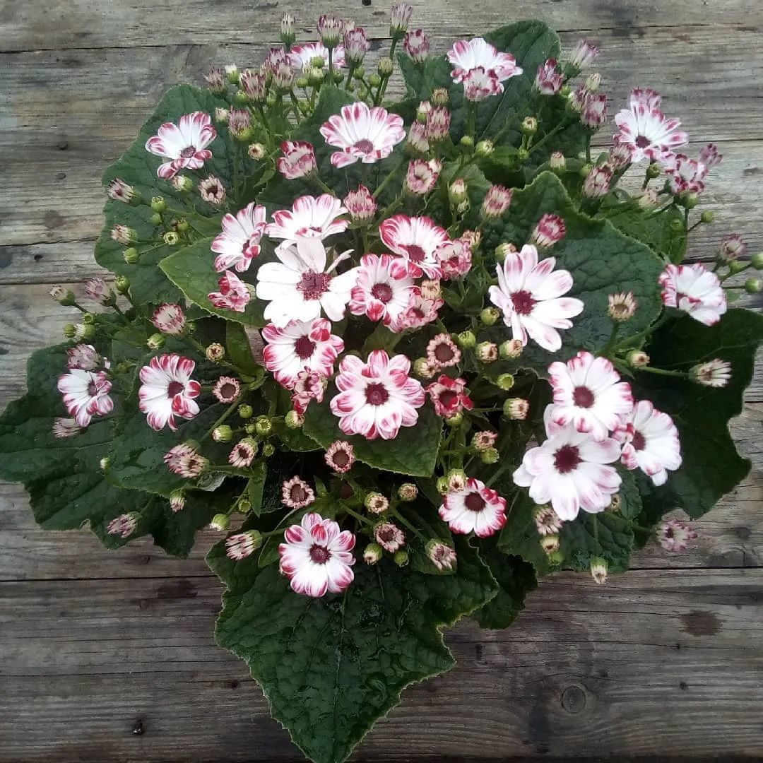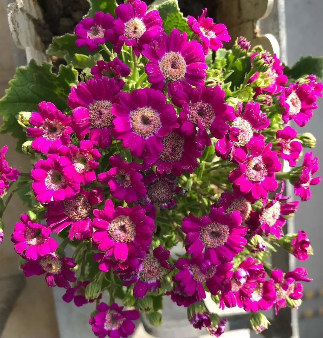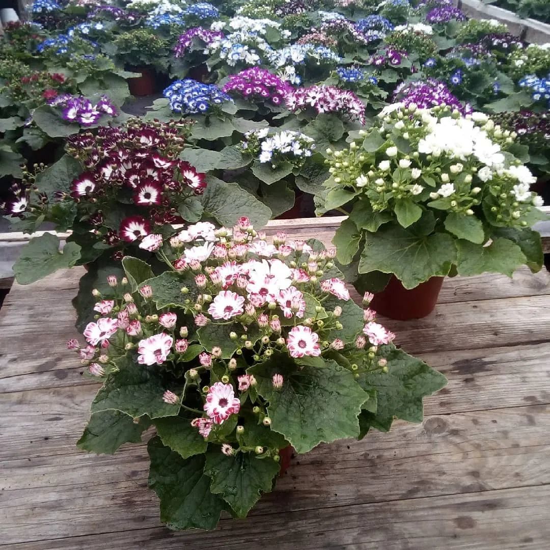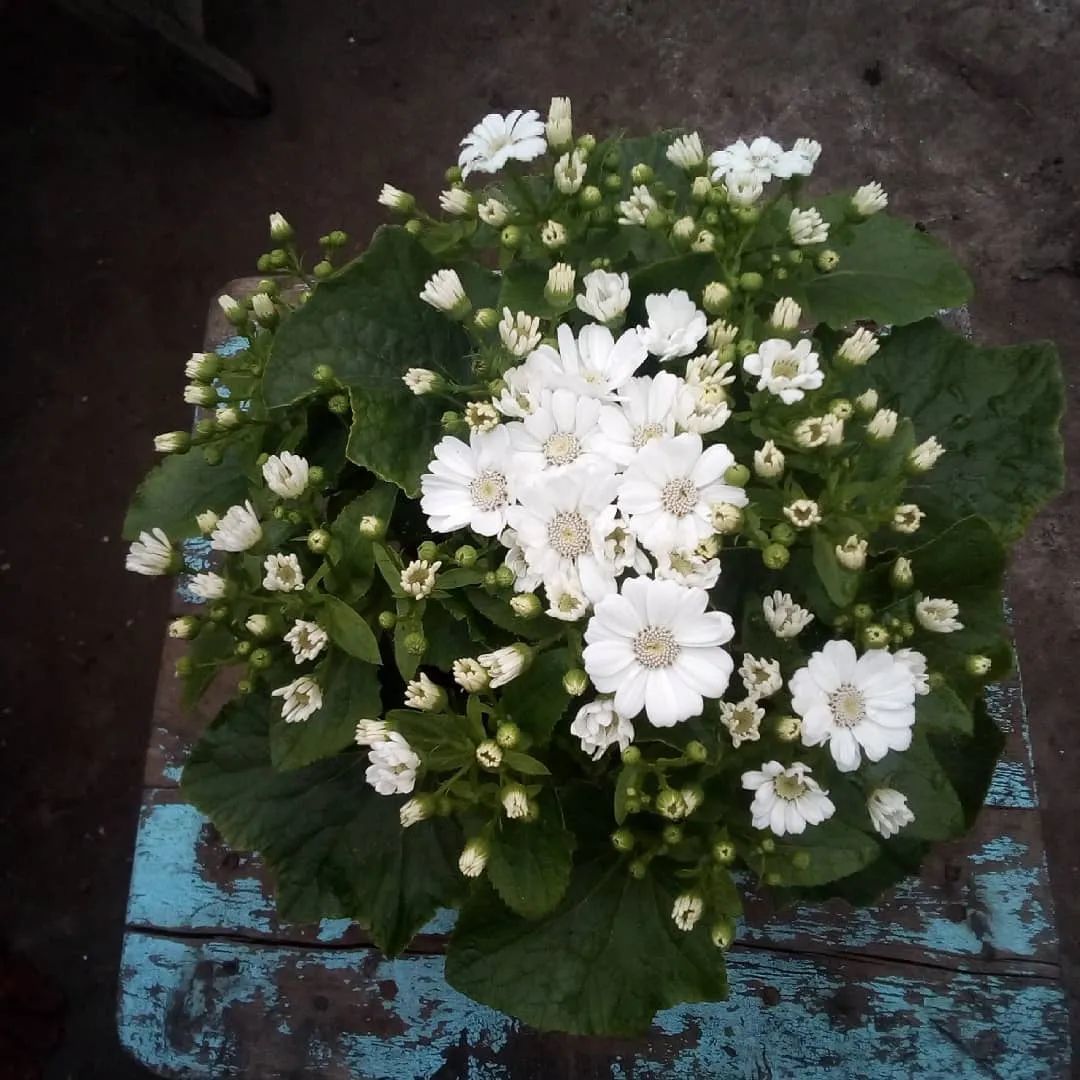 我们现在在市场上买到的瓜叶菊都是经过杂交培育出来的。每年冬春时节,天气冷凉的时候就是它们的最佳生长季节,一旦天气变热就歇菜了。