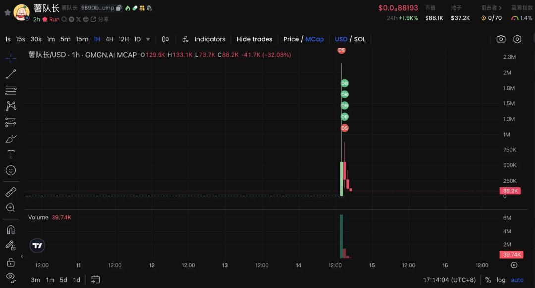 根据 GMGN 数据,目前$薯队长价格暂报 0.00008 美元左右,市值暂报 80 万美元左右。