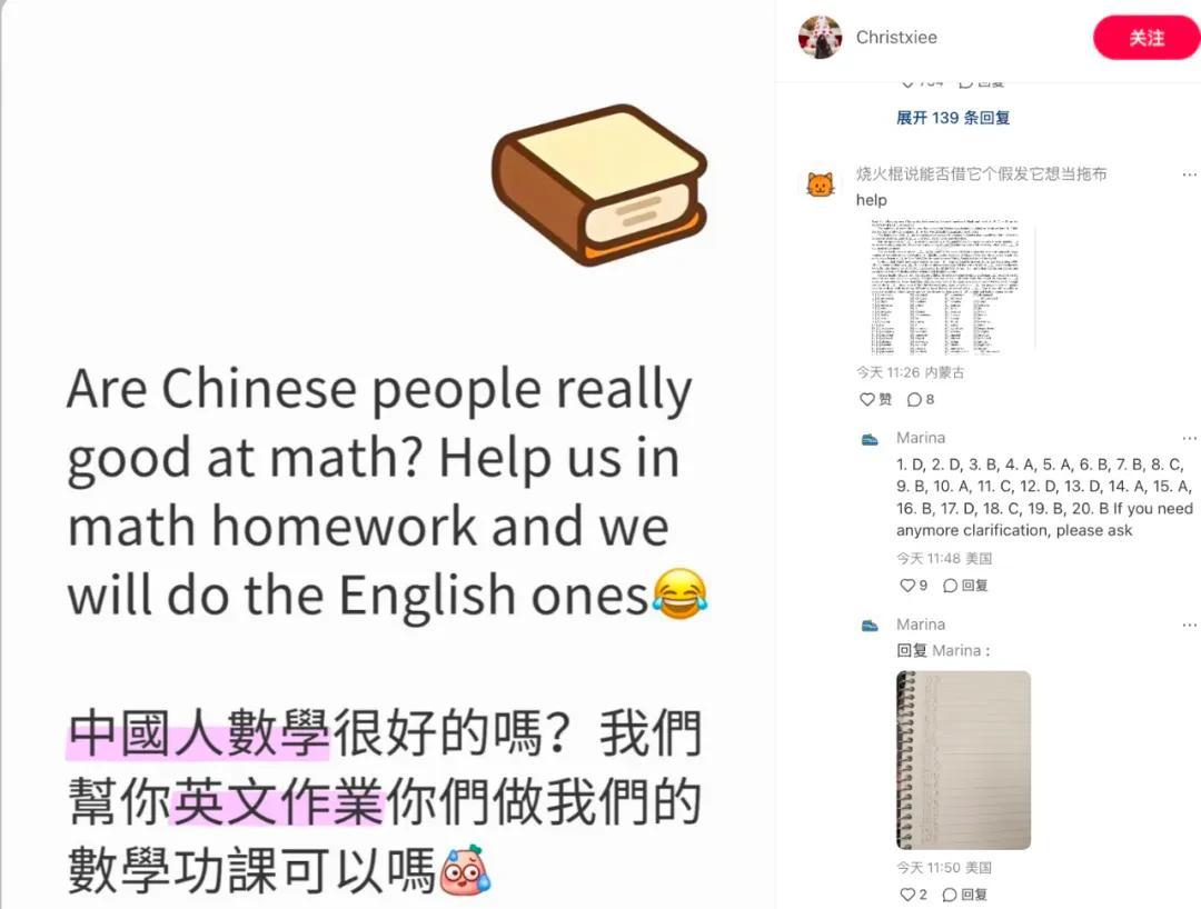 既然有中国人问外国人英语阅读题,自然也有倒反天罡的一幕——外国人问中国人数学题。