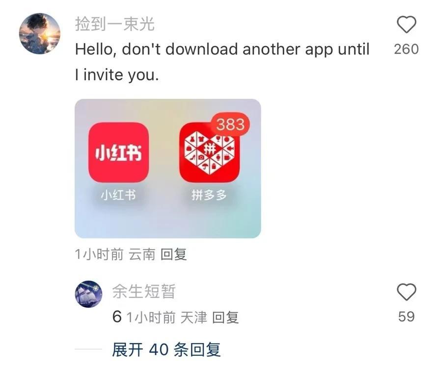 更有甚者,将老外看成了“拼多多新用户”,直言道“除非我邀请你,否则千万别下载拼多多 APP”,让老外都不得不喊一声“小红书套路深,我要回美国”。