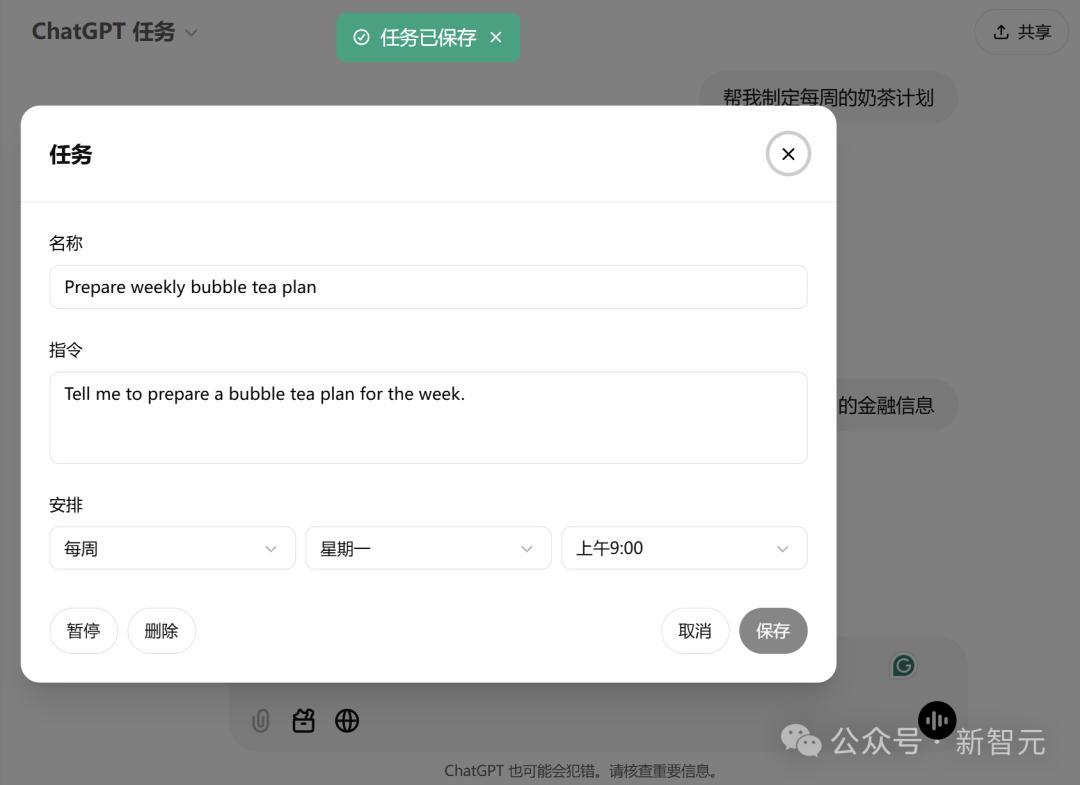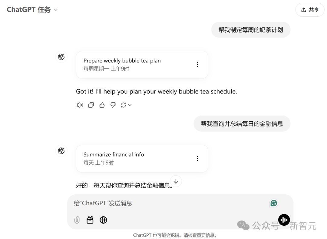 随着ChatGPT新功能「Tasks」的上线,OpenAI Agent在今天正式登场了!