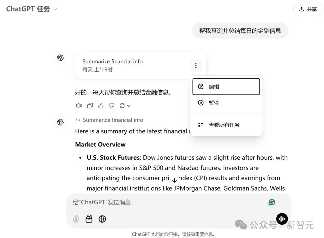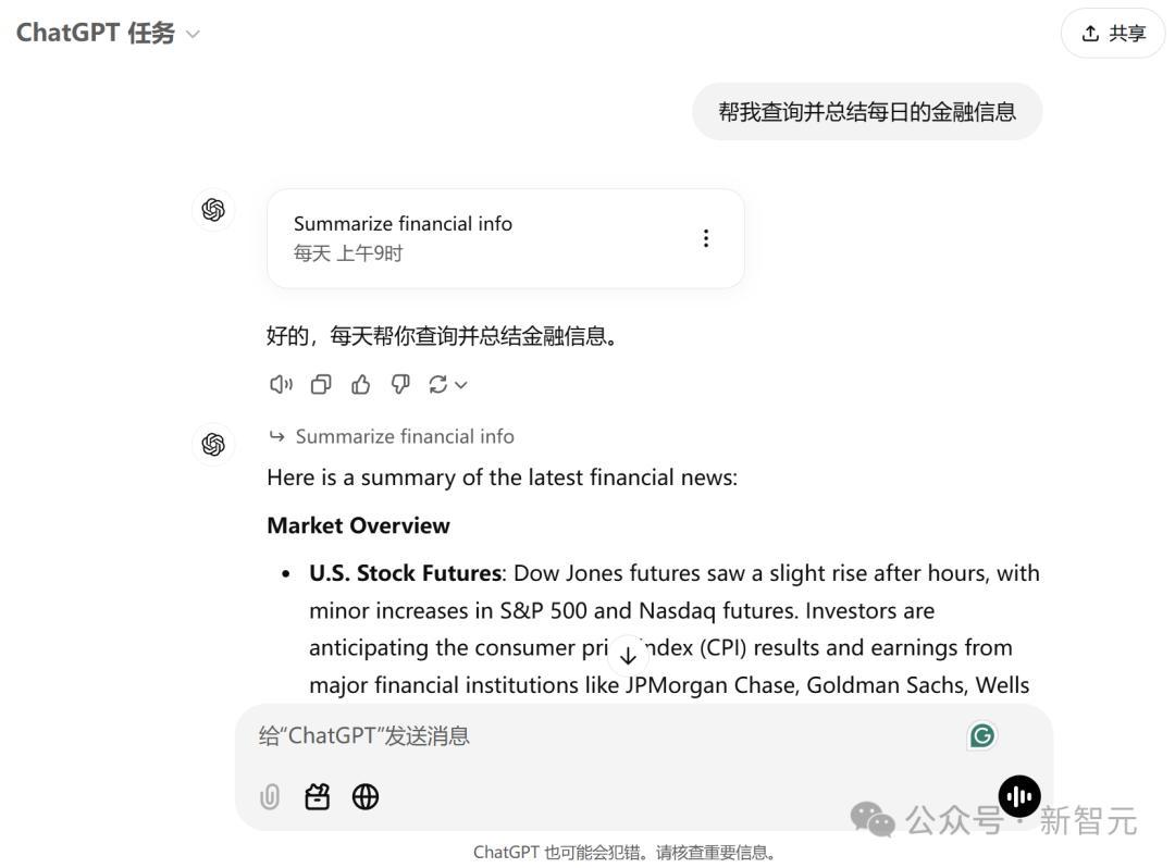 这也是ChatGPT首次能够代表用户去异步管理任务——无论是单次请求还是持续例程。例如它可以帮助你每天早上去监测股票价格!