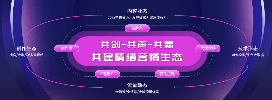 而2025喜马拉雅音控大会上发布的2025年喜马拉雅营销战略——让平台方、品牌方、代理伙伴、创作者、C端用户等PCB三端强协同,共建情绪营销生态,也是有的放矢。