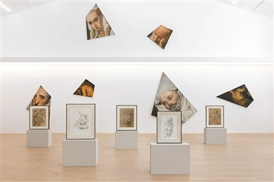 在当代唐人艺术中心北京第一空间的那面多边形墙上,我们看到形状不规则且没有画框的六件油画作品“副本”系列,乍一看像是散落的七巧板。仔细辨认,我们知道这些“片段”来自十五和十七世纪的西方古典主义油画:安东尼·凡·戴克的《科内利斯·凡·德·盖斯特的肖像》,鲁本斯的《冻僵的维纳斯》,扬·凡·艾克的《阿尔诺芬尼夫妇》,伦勃朗的《耶利米哀悼耶路撒冷的毁灭》,罗伯特·康平的《一位妇女》和卡拉瓦乔的《手提哥利亚头颅的大卫》。这六幅古典主义油画作品,题材涵盖罗马神话、宗教故事、肖像和风俗画。